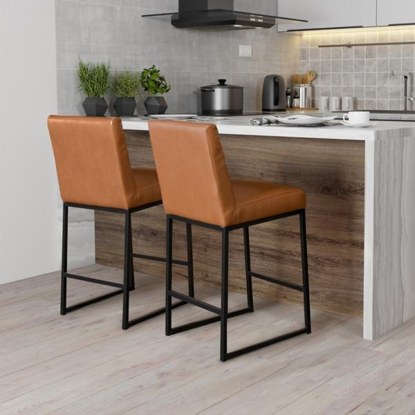 Modernize your kitchen with this Brown Faux Leather Armless Counter Stool! This stool features faux leather upholstery with deep, horizontal channeling and a black steel frame for a sleek, minimalist look. Stool measures 17.1L x 22W x 37.6H in.; seat height: 26.2 in. Crafted of metal Upholstered in brown faux leather with high-density foam fill Black metal finish Features horizontal channeling on backrest Weight: 15.21 lbs. Weight capacity: 300 lbs. No assembly required Not intended for commercial use Care: Wipe with a soft, dry cloth. Avoid direct sunlight. This item is available at Kirklands.com only, not available in stores. Please note: this item cannot be shipped to APO/FPO addresses.