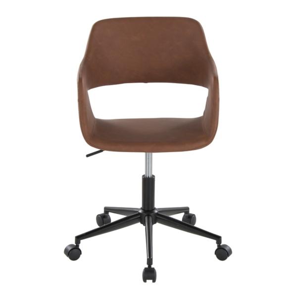 Elevate your office with this sleek Brown Faux Leather & Black Marshall Office Chair! This desk chair is as stylish as it is comfortable. From its soft faux leather to its modern black base, this chair makes work a breeze! Chair measures 27.5W x 27.5DW x 30.75H in. Crafted with a metal frame Upholstered in PU leather with high-density foam Brown faux leather finish Black base finish Features a low backrest with a slight opening Adjustable seat height: 16.25 - 30 in. Includes five (5) caster wheels Weight: 16.5 lbs. Weight capacity: 250 lbs. Assembly required; see Info & Guides in the drop down below to view or print assembly instructions Not intended for commercial use Care: Wipe with a soft, dry cloth. This item is available at Kirklands.com only, not available in stores. Please note: this item cannot be shipped to APO/FPO addresses.