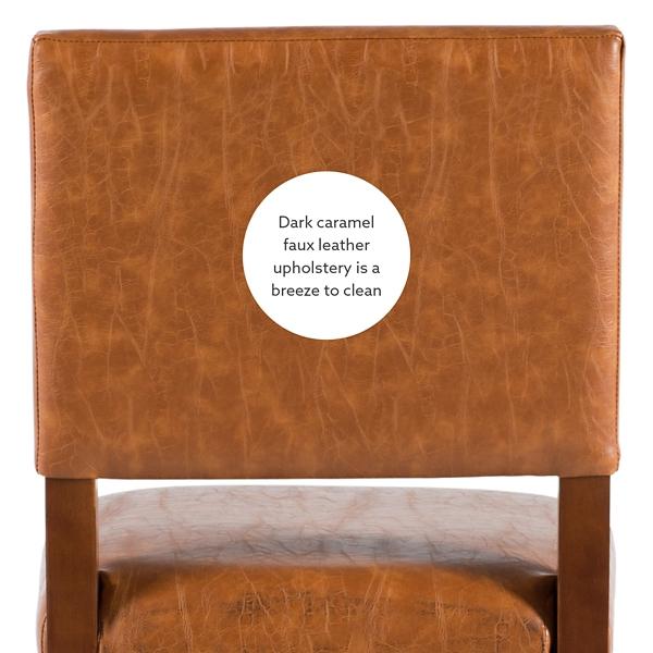 Have a seat on our Brown Faux Leather Square Classic Counter Stool and stay awhile! You’ll love the luxurious mixed material design of this beautiful stool! Stool measures 19W x 22D x 47H in. Crafted with a rubberwood frame Walnut wood leg finish Seat upholstered in caramel faux leather with foam fill Features nail head trim accents Suitable for counter heights of 35 in. to 39 in. Seat measures 19W x 20D x 23.7H in. Weight: 22.1 lbs. Weight capacity: 225 lbs. Some assembly required; see Info & Guides below to view or print assembly instructions. Not intended for commercial use Care: Spot clean only. This item is available at Kirklands.com only, not available in stores. Please note: this item cannot be shipped to APO/FPO addresses.