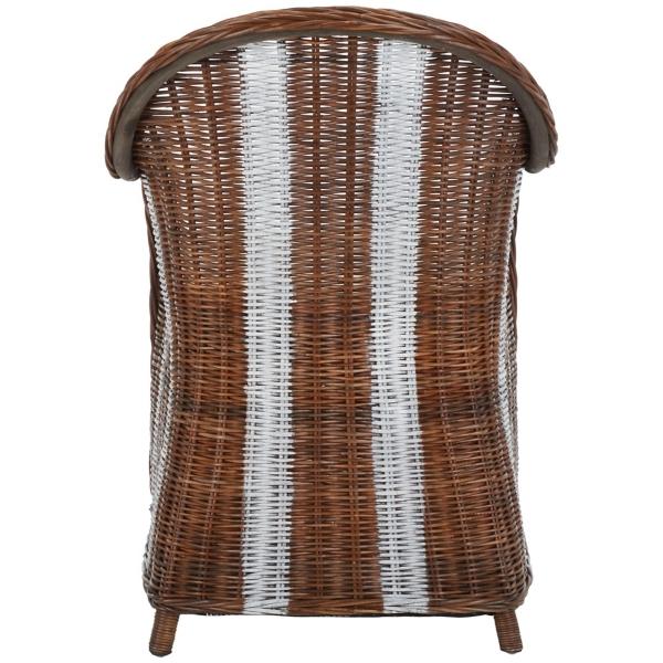 This Brown Lacak Rattan Striped Accent Chair is perfect for a coastal touch to your space. You'll love the eye-catching, resort style awning stripes that accent this chair! Chair measures 25.5W x 26.5D x 35.5H in.; seat height: 17.7 in. Crafted with a lacak rattan frame Upholstered in cotton and filled with high-density foam Brown finish White upholstery finish Features a curved design Accented with white awning stripes Club chair silhouette Weight: 15 lbs. Weight capacity: 275 lbs. No assembly required Not intended for commercial use Care: Spot clean. This item is available at Kirklands.com only, not available in stores. Please note: this item cannot be shipped to APO/FPO addresses.