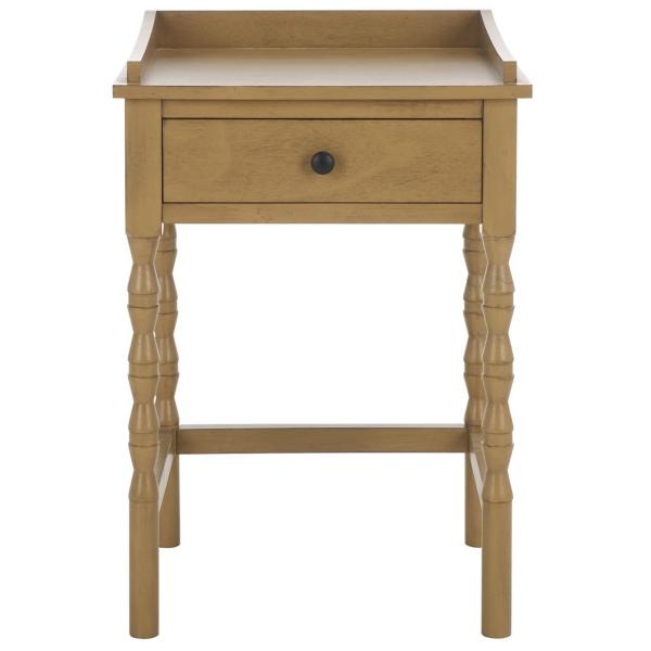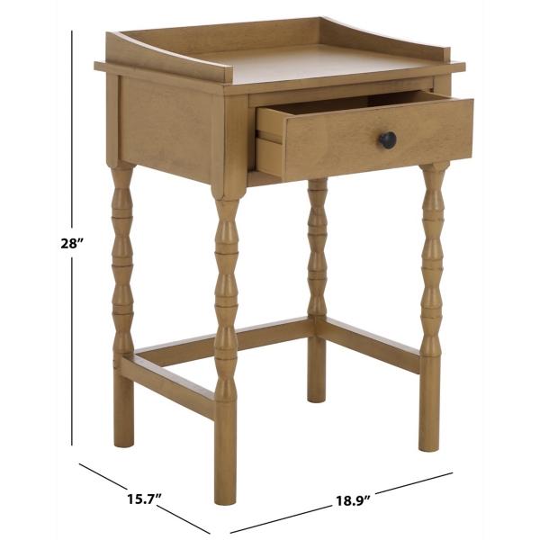 Elevate your living space with the understated elegance of this Brown Single Drawer Cottage Lucinda Accent Table. The clean lines and warm tone provide a sophisticated touch that fits seamlessly into any room! Overall dimensions Width: 18.9 in. Depth: 15.7 in. Height: 28 in. Crafted of pine wood and wood composite Brown finish Features one (1) drawer Turned legs Weight: 18 lbs. Weight capacity: 40 lbs. Assembly required Not intended for commercial use Care: Dust with a soft, dry cloth. Wipe spills immediately. Avoid common hazards such as hot dishes, harsh solvents, and abrasives. Adhesive felt pads to protect flooring are recommended. This item is available at Kirklands.com only, not available in stores. Please note: this item cannot be shipped to APO/FPO addresses.