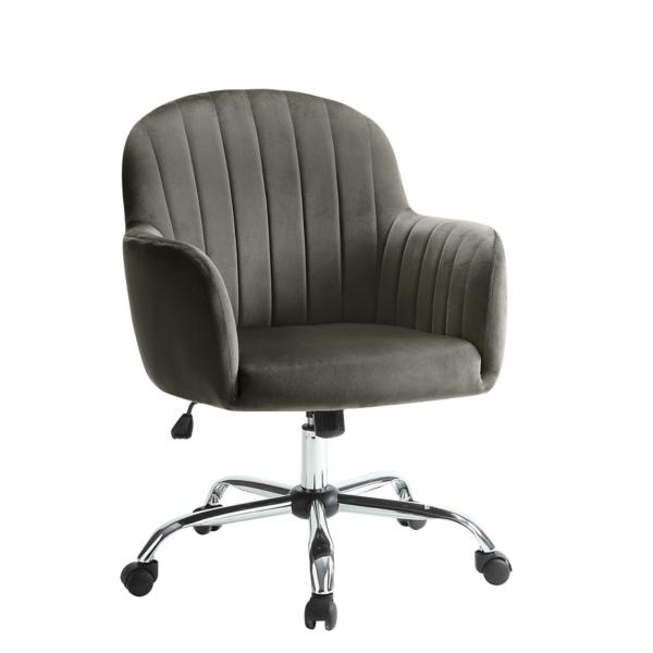 Update your work space with the modern style of this Brown Upholstered Curved Maddy Office Chair. Featuring a curved back and soft fabric, it will add effortless comfort to your work day! Overall dimensions Width: 26.5 in. Depth: 28 in. Height: 35 in. Seat height: 18.5 in. Crafted with a metal frame Silver base finish Upholstered in brown polyester Foam fill Curved back Features smooth-rolling wheels Weight: 26 lbs. Weight capacity: 300 lbs. Assembly required/Some assembly required Not intended for commercial use Care: Dust with a soft, dry cloth./Spot clean only. This item is available at Kirklands.com only, not available in stores. Please note: this item cannot be shipped to APO/FPO addresses. WARNING: Cancer and Reproductive Harm - For more information go to www.P65Warnings.ca.gov.