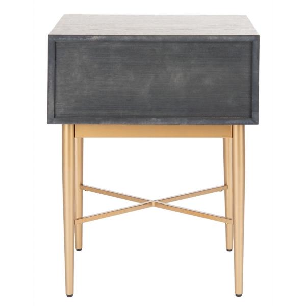 With sleek, gold metal highlighting its rich wood finish, this Brown Wood Angie Modern Accent Table blends modern and timeless styles. It will effortlessly update your living room or bedroom! Overall dimensions Width: 19 in. Depth: 17 in. Height: 25 in. Crafted of plywood and metal Brown top finish Gold base finish Features one (1) drawer Weight: 33 lbs. Weight capacity: 50 lbs. Assembly required Not intended for commercial use Care: Dust with a soft, dry cloth. This item is available at Kirklands.com only, not available in stores. Please note: this item cannot be shipped to APO/FPO addresses.