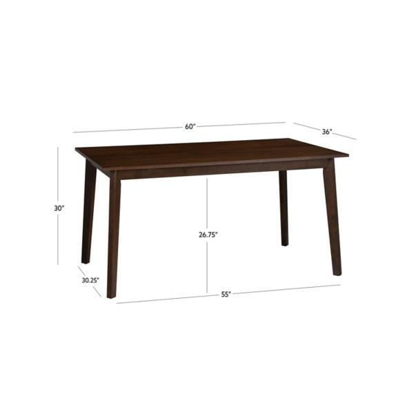 Gather around for family meals and friendly get-togethers with this timeless Brown Wood Drury Dining Table as your centerpiece! The sleek silhouette and clean lines embody the grace of midcentury design. Dining table measures 60L x 36W x 30H in. Crafted of rubberwood Brown finish Rectangular shape Angled legs Weight: 62 lbs. Weight capacity: 100 lbs. Assembly required; see Info & Guides in the drop down below to view or print assembly info Not intended for commercial use Care: Wipe clean with a soft damp cloth. This item is available at Kirklands.com only, not available in stores. Please note: this item cannot be shipped to APO/FPO addresses.