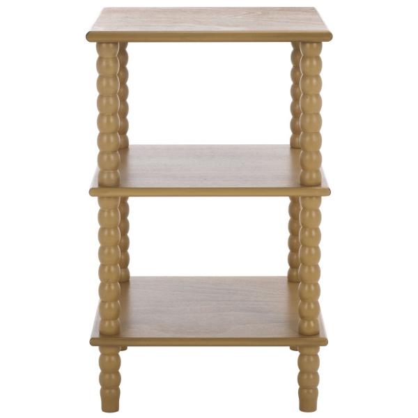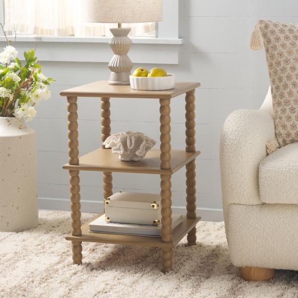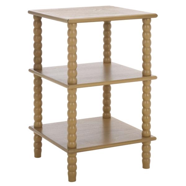Spindle legs and a sleek frame create the modern, playful design of the Brown Wood Minerva Accent Table. The 3 spacious shelves provide the perfect platform for plants, books, and décor. Overall dimensions Width: 18.9 in. Depth: 15.7 in. Height: 25.6 in. Crafted of MDF Brown pine finish Spindle legs 3-shelves Weight: 16 lbs. Weight capacity: 40 lbs. No assembly required Not intended for commercial use Care: Dust with a soft, dry cloth. This item is available at Kirklands.com only, not available in stores. Please note: this item cannot be shipped to APO/FPO addresses.