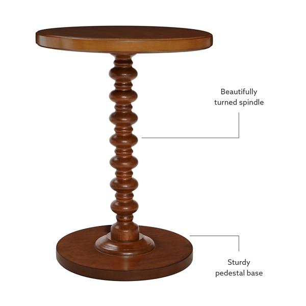 Our Brown Wood Spindle Side Table is a beautiful combination of simple style and traditional charm! You’ll love that this piece lets you utilize even the smallest spaces in your home. Side table measures 22.3H x 17 in. in diameter Crafted of solid rubberwood Brown finish Features a turned spindle design with a pedestal base Weight capacity: 20 lbs. Some assembly required; see Info & Guides below to view or print assembly instructions. Not intended for commercial use Care: Wipe with a soft, damp cloth. Not safe for outdoor use. This item is available at Kirklands.com only, not available in stores. Please note: this item cannot be shipped to APO/FPO addresses. WARNING: This product can expose you to chemicals including DEHP which is known to the state of California to cause cancer and birth defects or other reproductive harm. For more information go to www.P65Warnings.ca.gov.