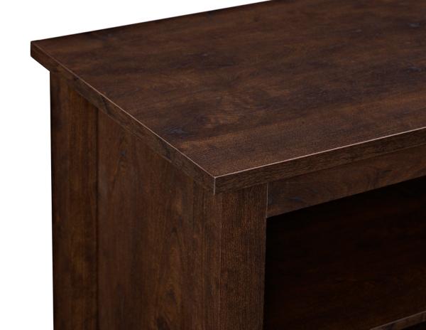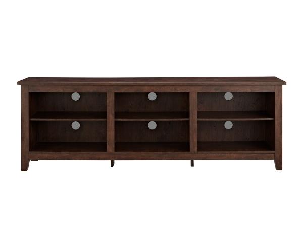 This Brown Wood TV Stand balances style and function effortlessly, providing needed organization. You’ll have plenty of space for movies, games, and cable boxes. Its rich wood finish is sure to enrich your space! Stand measures 70L x 16W x 24H in. Crafted of warp-resistant wood composite and durable laminate Brown wood finish Features adjustable shelves Each compartment features one (1) cord control cutout Weight capacity: 250 lbs. Fits TV sizes up to 85 in. Full assembly required Not intended for commercial use Care: Dust with a soft, dry cloth. This item is available at Kirklands.com only, not available in stores. Please note: this item cannot be shipped to APO/FPO addresses.