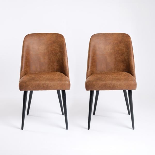 Elevate your dining room with these sophisticated Brown Wyatt Faux Leather Dining Chairs! From our classic Wyatt collection, this dining chair set will infuse comfortable style and rustic warmth into to your space. Set includes two (2) dining chairs Each chair measures 20W x 22.8D x 34.8H in.; seat height: 19.9 in. Frame crafted of wood and metal Upholstered in brown faux leather with high-density foam fill Black leg finish Features an armless design Weight: 23.2 lbs. Weight capacity: 225 lbs. Some assembly required; see Info & Guides below to view or print assembly instructions Not intended for commercial use Care: Spot clean. This item is available at Kirklands.com only, not available in stores.