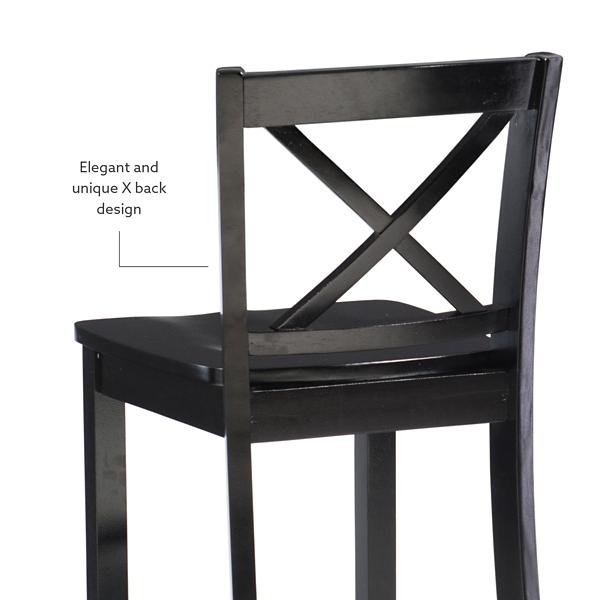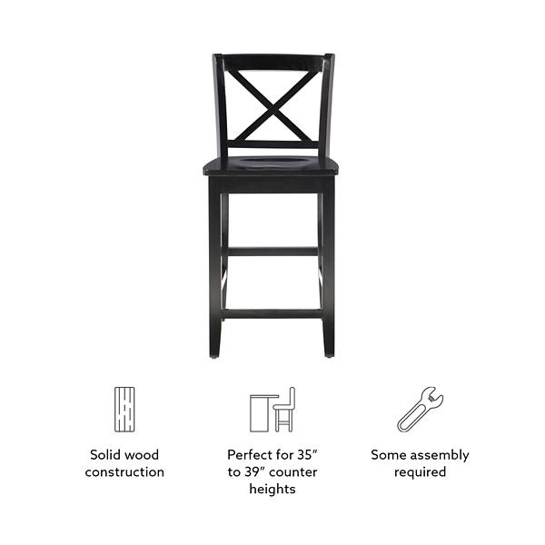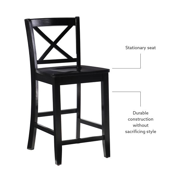 Create a timeless seating arrangement around your pub table with our Carter X-Back Counter Stool. You’ll love the sleek black finish and classic, crossed back design - pairing well with a variety of styles from farmhouse to traditional decor. Stool measures 16.9L x 21W x 37.25H in.; Seat height measures 24H in. Seat measures 16.75L x 16.9W in. Crafted of Vietnamese mahogany wood Black finish Features an x-shaped back support Accented with two (2) thin wood block front legs and two (2) splayed back legs Suitable for counter heights of 35 in. to 39 in. Weight capacity: 275 lbs. Some assembly required Not intended for commercial use Care: Dust with soft, dry cloth. This item is available at Kirklands.com only, not available in stores. Please note: this item cannot be shipped to APO/FPO addresses. WARNING: This product can expose you to chemicals including Di-(2-ethl hexyl) phthalate which is known to the state of California to cause cancer and birth defects or other reproductive harm. For more information go to www.P65Warnings.ca.gov