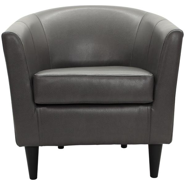 The Charcoal Faux Leather Winslow Accent Chair features a classic yet contemporary look that blends with a variety of settings. The low maintenance faux leather is sure to create a sense of effortless luxury. Chair measures 27.5L x 30.5W x 32H in.; seat measures 19H in. Crafted of faux leather and resin High-density foam fill Upholstered in a dark gray faux leather Black leg finish Padded, removable seat Crafted with sustainable materials Weight capacity: 300 lbs. Some assembly required Made in the United States Not intended for commercial use Care: Dust with a soft, dry cloth. This item is available at Kirklands.com only, not available in stores. Please note: this item cannot be shipped to APO/FPO addresses.