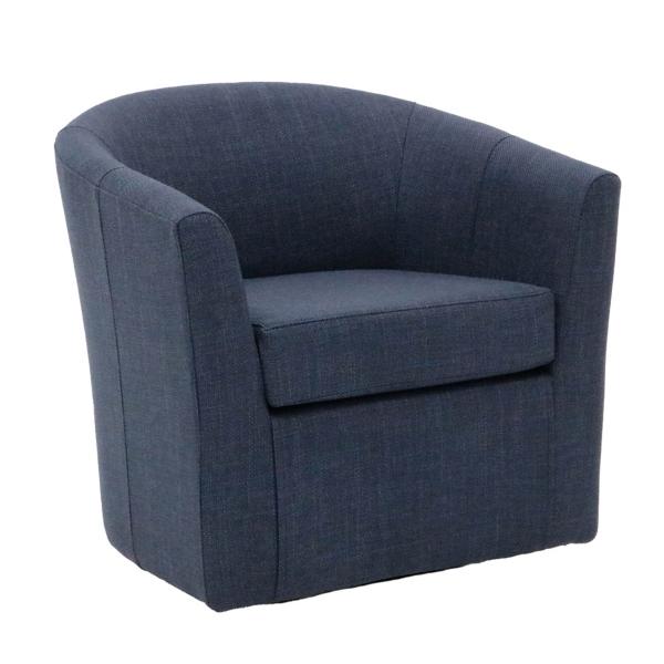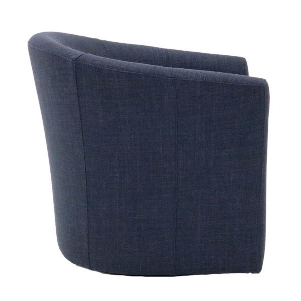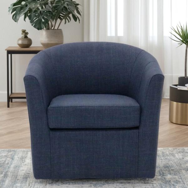 Upgrade your space with this Chloe Navy Upholstered Swivel Chair! The smooth 360-degree swivel base offers flexibility and ease, making it an ideal choice for living rooms, bedrooms, reading nooks, or home offices. Accent chair measures 27W x 30.5D x 30H in.; seat height: 19 in. Crafted with a wood and metal frame Black metal finish Upholstered in navy blue polyester and filled with high-density foam Features 360 degree swivel capability Flared arms Removable seat cushion Seat measures 20.5W x 19.5D in. Weight: 34 lbs. Weight capacity: 300 lbs. No assembly required Made in the United States Not intended for commercial use Care: Spot clean. This item is available at Kirklands.com only, not available in stores. Please note: this item cannot be shipped to APO/FPO addresses.