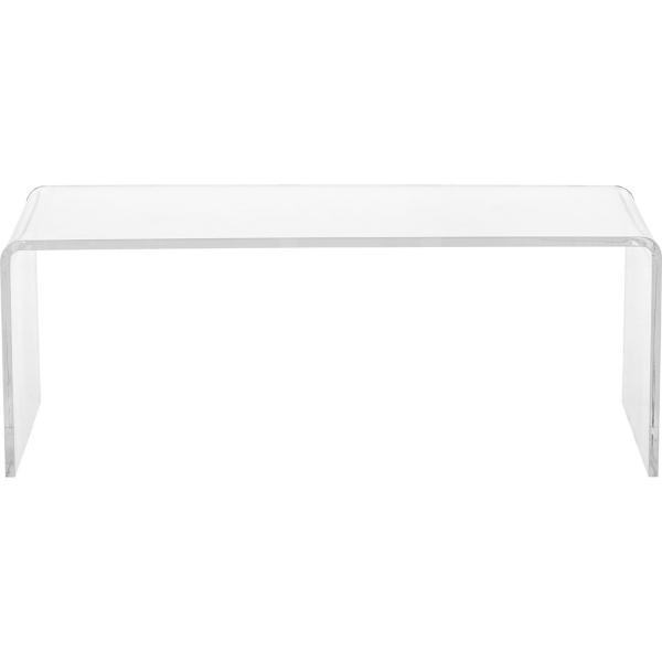 Refresh your living room with this Clear Acrylic Curved Edge Coffee Table! This modern coffee table features a clear finish and a waterfall edge design for a chic, stylish touch to your home. Coffee table measures 37.4W x 21.2D x 14H in. Crafted of acrylic Clear finish Rectangle shape Features curved waterfall edges Weight: 13 lbs. No assembly required Not intended for commercial use Care: Wipe with a damp cloth. This item is available at Kirklands.com only, not available in stores. Please note: this item cannot be shipped to APO/FPO addresses.
