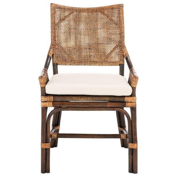 From your dining table to your living room, this Coastal Natural Rattan Donna Accent Chair is perfect for refreshing your space! You’ll love the natural finishes and the breezy, tropical look of the rattan. Chair measures 22W x 24D x 37H in.; seat height: 17.8 in. Crafted with a mahogany frame Upholstered in cotton and filled with high-density foam Brown leg finish White upholstery finish Features a woven rattan backrest Weight: 11 lbs. Weight capacity: 275 lbs. Assembly required; see Info & Guides in the drop down below to view or print assembly instructions Not intended for commercial use Care: Spot clean. This item is available at Kirklands.com only, not available in stores. Please note: this item cannot be shipped to APO/FPO addresses.