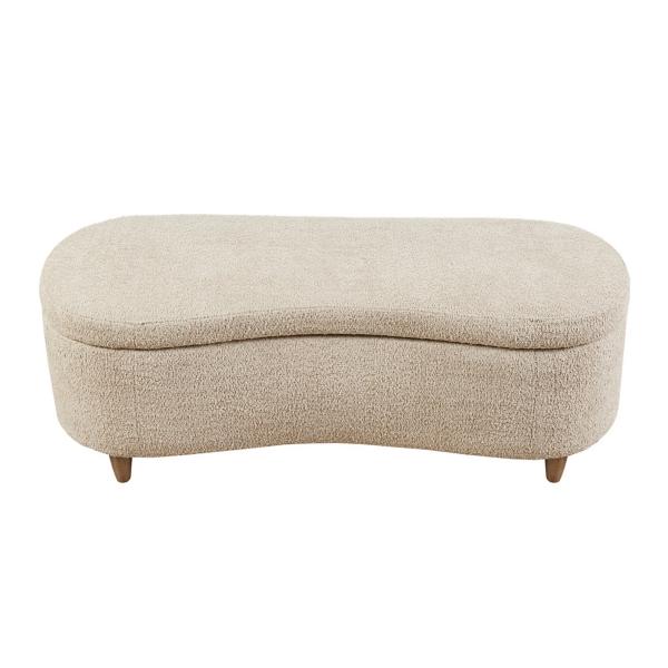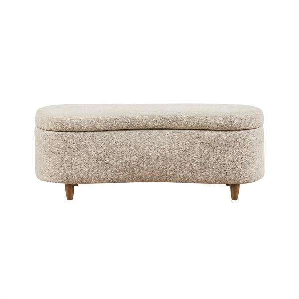Introducing our Cream Boucle Flip-Top Storage Bench! This bench is a stylish and versatile piece that will fit seamlessly into any room of your home. Featuring clean lines and a curved front, you'll love all the storage space! Bench measures 48L x 16.5W x 18H in. Crafted of solid wood and plywood Upholstered in polyester with a high-density foam cushion fill Natural elm leg finish Cream boucle upholstery finish Accented with a curved front Includes soft-close hinges Weight capacity: 400 lbs. Some assembly required Care: Spot clean. This item is available at Kirklands.com only, not available in stores. Please note: this item cannot be shipped to APO/FPO addresses.WARNING: Cancer and Reproductive Harm - For more information go to www.P65Warnings.ca.gov.