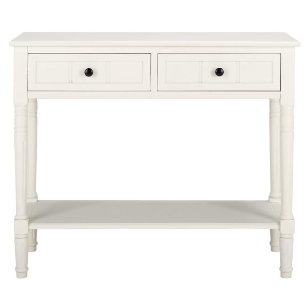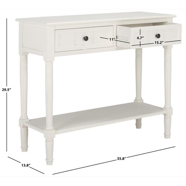 Bring a modern touch to your entryway with our Cream Carved 2-Drawer Console Table! This sophisticated table is perfect for keeping your items tucked away or displaying your favorite decorative accents! Table measures 35.8L x 13.8W x 29.5H in. Crafted of pine Cream finish Features two (2) drawers Accented with turned legs and carved drawer fronts Includes one (1) lower fixed shelf Shelf measures 15.7H in. Weight capacity: 50 lbs. Some assembly required Care: Dust regularly with a soft, dry cloth. This item is available at Kirklands.com only, not available in stores. Please note: this item cannot be shipped to APO/FPO addresses. WARNING: This product can expose you to chemicals including wood dust, which is known to the state of California to cause cancer and birth defects or other reproductive harm. For more information go to www.P65Warnings.ca.gov.