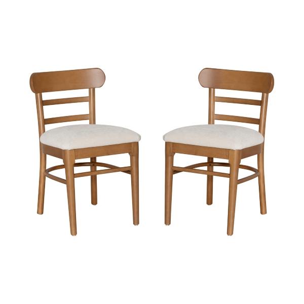 Bring style and comfort to your dining space with these Cream Upholstered Wood Dining Chairs! These contemporary dining chairs feature simple yet modern details to complete the look of your home. Set includes two (2) dining chairs Each chair measures 17.75W x 18D x 31.5H in.; seat height: 19 in. Crafted of beechwood Upholstered in cream polyester with high-density foam fill Honey brown wood finish Features curved backrests Weight capacity: 300 lbs. No assembly required Not intended for commercial use Care: Spot clean. This item is available at Kirklands.com only, not available in stores. Please note: this item cannot be shipped to APO/FPO addresses.