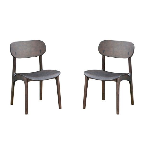 Elevate your dining room with our Dark Brown Mid-Century Modern Chair Set! The sophisticated finish and stylish design will give your space a sleek, stylish look! Set includes two (2) chairs Each chair measures 18.5L x 18.8W x 33H in.; seat height: 18 in. Crafted of rubberwood and plywood Dark brown finish Features curved seat and backrest Armless open-back design Weight capacity: 300 lbs. Assembly required Care: Wipe clean with damp or dry cloth. This item is available at Kirklands.com only, not available in stores. Please note: this item cannot be shipped to APO/FPO addresses. WARNING: This product can expose you to chemicals including Formaldehyde Gas, which is known to the state of California to cause cancer and birth defects or other reproductive harm. For more information go to www.P65Warnings.ca.gov.