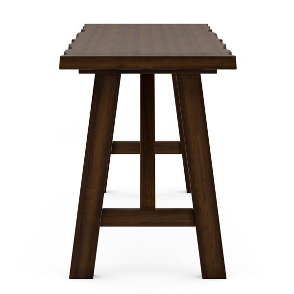 The Dark Brown Wood Live Edge Bench will bring effortless, natural beauty to your living space. Made with a walnut wood finish and trestle base, this bench is sure to make a gorgeous seating option. Bench measures 53.9L x 14W x 18.25H in. Crafted of solid wood and wood veneer Lightly distressed, walnut finish Live edge Trestle bench Weight capacity: 300 lbs. Assembly required Not intended for commercial use Care: Dust with a soft, dry cloth. This item is available at Kirklands.com only, not available in stores. Please note: this item cannot be shipped to APO/FPO addresses. WARNING: This product can expose you to chemicals including formaldehyde (gas) which is known to the state of California to cause cancer and birth defects or other reproductive harm. For more information go to www.P65Warnings.ca.gov.