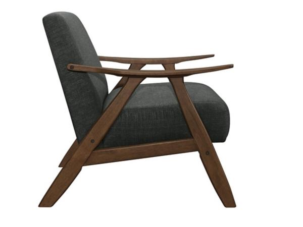 Get in on the mid-century modern trend with this Dark Gray Mid-Century Hazel Frame Accent Chair! Its neutral yet rich finishes make it an easy addition to any room. You’ll fall in love with its sleek, contoured style. Chair measures 28.5L x 32W x 31.5H in.; seat height: 18H in. Crafted with a solid beech wooden frame Walnut wood frame finish Upholstered in a dark gray fabric A-frame contoured side and arms design Assembly required Weight capacity: 300 lbs. Not intended for commercial use Care: Spot clean only. This item is available at Kirklands.com only, not available in stores. Please note: this item cannot be shipped to APO/FPO addresses.