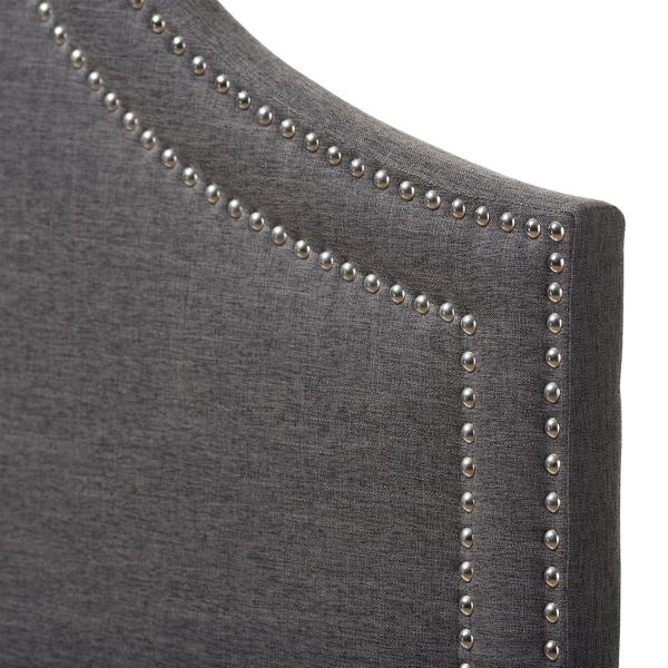 Make your bedroom an elegant space with our Dark Gray Scalloped Corner Queen Headboard! This beautiful headboard will elevate your existing bed frame with ease. Headboard measures 25.7L x 2W x 60.8H in. Crafted of wood composite and metal Black metal finish Upholstered in a dark gray fabric with foam Scalloped edges with a silver nailhead trim Headboard comes with 2 pre-drilled holes (with height from ground up 5.5-8 in.) Assembly required Not intended for commercial use Care: Spot clean only. This item is available at Kirklands.com only, not available in stores. Please note: this item cannot be shipped to APO/FPO addresses. WARNING: This product can expose you to chemicals including formaldehyde phthalate which is known to the state of California to cause cancer and birth defects or other reproductive harm. For more information go to www.P65Warnings.ca.gov.