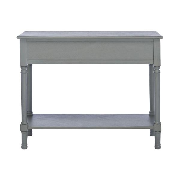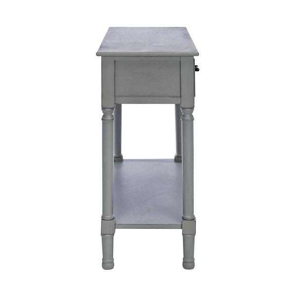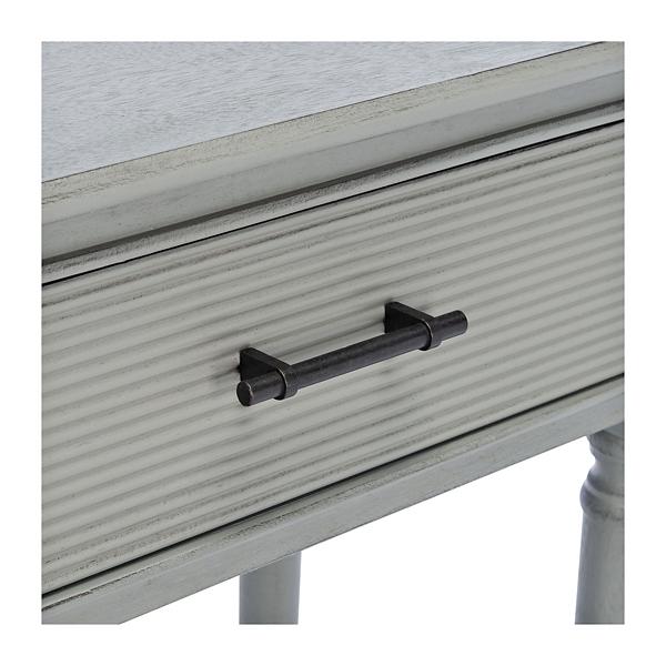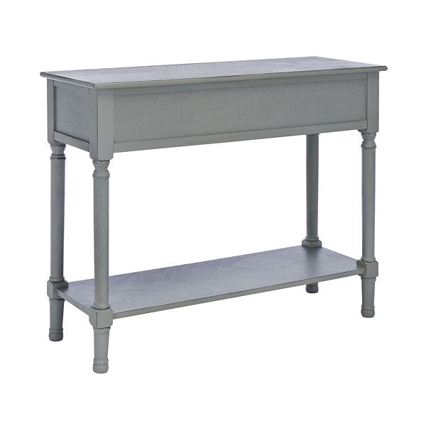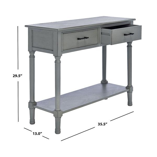The Distressed Gray Ronan 2-Drawer Console Table pairs well with any decor style from farmhouse to contemporary! With its classic turned legs and striated details, this table embodies modern traditional charm. Table measures 35.5L x 13W x 29.5H in. Crafted of pine wood and wood composite Distressed gray finish Features two (2) drawers Includes a bottom shelf Accented with striated drawer details and black metal hardware Weight capacity: 40 lbs. Assembly required Not intended for commercial use Care: Dust with a soft, dry cloth. This item is available at Kirklands.com only, not available in stores. Please note: this item cannot be shipped to APO/FPO addresses. WARNING: This product can expose you to chemicals including wood dust which is known to the state of California to cause cancer and birth defects or other reproductive harm. For more information go to www.P65Warnings.ca.gov.