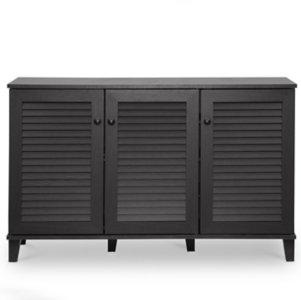 Fashion and function together beautifully in our Espresso 3-Door Wood Cabinet. You’ll love the rich espresso finish and plethora of storage spots. Cabinet measures 44.5L x 14.63W x 27.5H in. Crafted of wood composite Espresso finish Features three (3) doors and six (6) shelves Doors features slatted design Weight: 64 lbs. Full assembly required Not intended for commercial use Care: Dust with a soft, dry cloth. This item is available at Kirklands.com only, not available in stores. Please note: this item cannot be shipped to APO/FPO addresses. WARNING: Cancer and Reproductive Harm - For more information go to www.P65Warnings.ca.gov.
