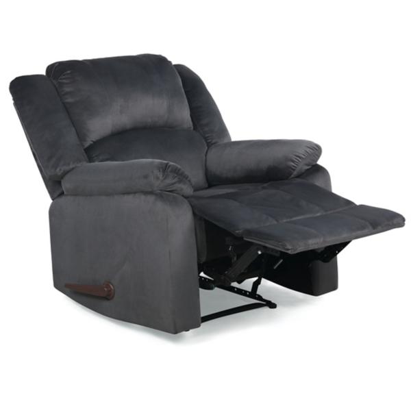 Kick back and relax in our Flannel Gray Overstuffed Pull Recliner! This style combines soft microfiber material and an easy-pull mechanism to create the lounger of your dreams. With three different reclining positions, this chair is sure to keep you comfortable. Recliner measures 37.8L x 33.5W x 39.4H in.; seat height: 18.7 in. Full recline length: 65 in. Crafted with a wood frame Upholstered with microfiber fabric and filled with high density foam Flannel gray upholstery finish with brown legs Overstuffed, pull-lever recliner design Reclines in three (3) different postions Weight capacity: 250 lbs. Some assembly required Not intended for commercial use Care: Spot clean only. Not safe for outdoor use. This item is available at Kirklands.com only, not available in stores. Please note: this item cannot be shipped to APO/FPO addresses. WARNING: This product can expose you to chemicals including wood dust which is known to the state of California to cause cancer and birth defects or other reproductive harm. For more information go to www.P65Warnings.ca.gov.