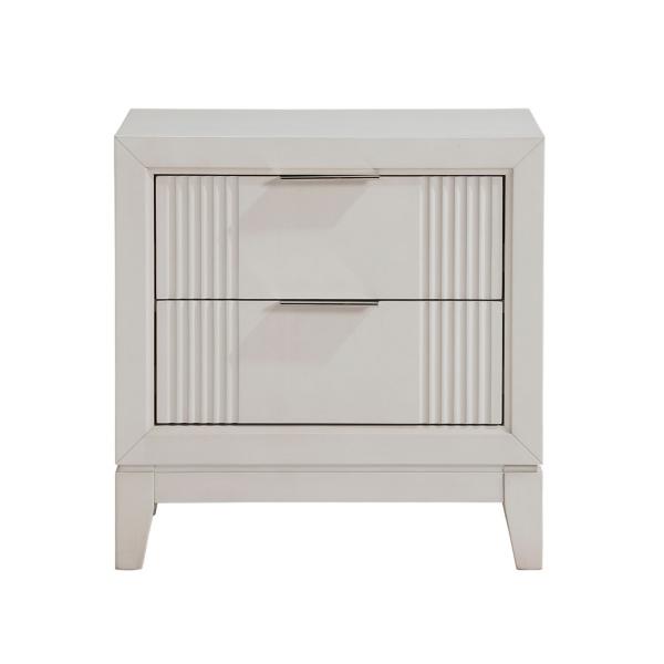 Refine your bedroom with the sleek sophistication of this Florence Antique White Reeded 2-Drawer Nightstand! The two spacious drawers offer ample storage for your bedside essentials, while the reeded details add a subtle touch of texture and elegance. Nightstand measures 26W x 17D x 27H in. Crafted of wood Antique white finish Features two (2) drawers Reeded drawer front design Polished chrome hardware Weight: 54 lbs. Assembly required; see Info & Guides in the drop down below to view or print assembly info Not intended for commercial use Care: Wipe with a soft, dry cloth. This item is available at Kirklands.com only, not available in stores. Please note: this item cannot be shipped to APO/FPO addresses.