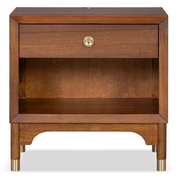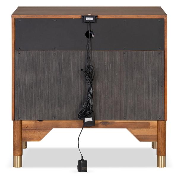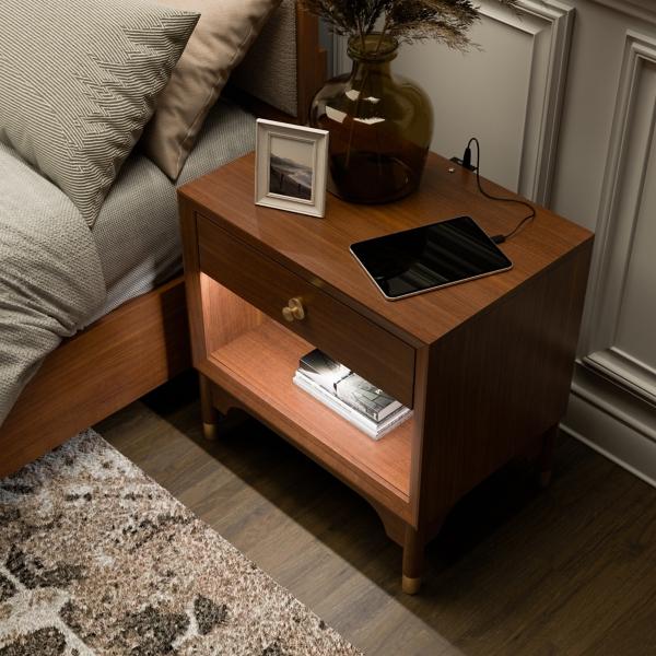 This Forma Walnut Charging Nightstand with LED Light features style and function! Its drawer, open shelf, touch LED light, and USB ports bring modern function all in a compact, stylish design. Nightstand measures 26W x 18D x 26H in. Crafted of rubberwood Walnut finish Features a drawer and an open shelf Equipped with USB charging ports and a touch LED light Gold hardware finish Weight: 43 lbs. Weight capacity: 50 lbs. Assembly required; see Info & Guides in the drop down below to view or print assembly info Not intended for commercial use Care: Wipe with a soft, dry cloth. This item is available at Kirklands.com only, not available in stores. Please note: this item cannot be shipped to APO/FPO addresses.