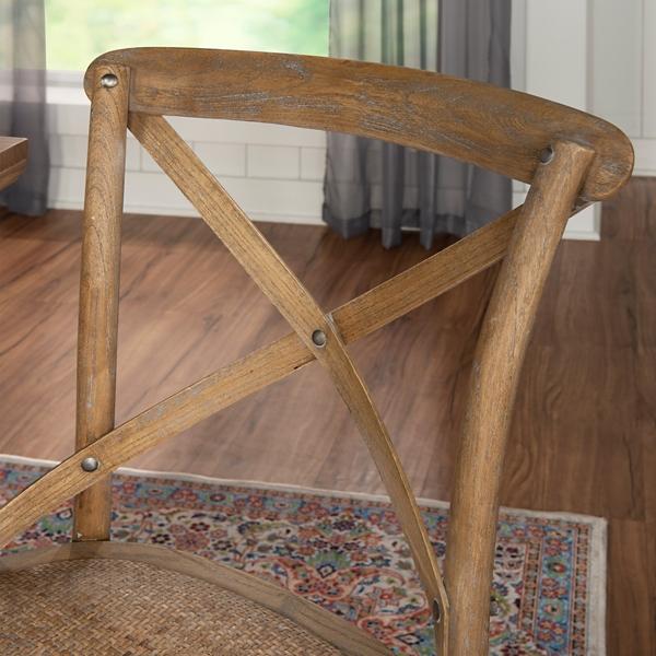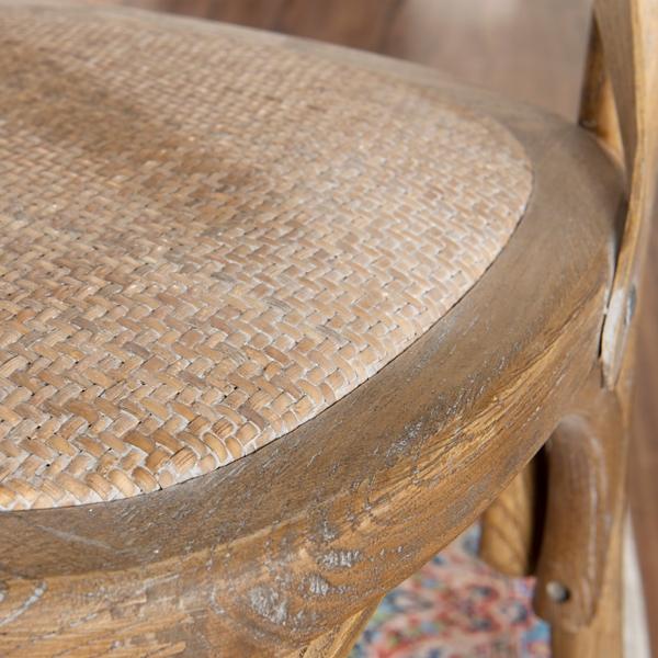 These French Country X-Back Dining Chairs are the perfect way to update your farmhouse dining table. Their neutral finish and simple, curved design are sure to blend in perfectly, no matter the color scheme or season. Set includes two (2) chairs Each chair measures 19.75L x 21.62W x 35H in.; Seat height measures 19H in. Crafted of wood Gray wash finish X-back design Curved frame details and woven natural seat Weight capacity: 275 lbs. No assembly required Not intended for commercial use Care: Dust with a soft, dry cloth. This item is available at Kirklands.com only, not available in stores. Please note: this item cannot be shipped to APO/FPO addresses.
