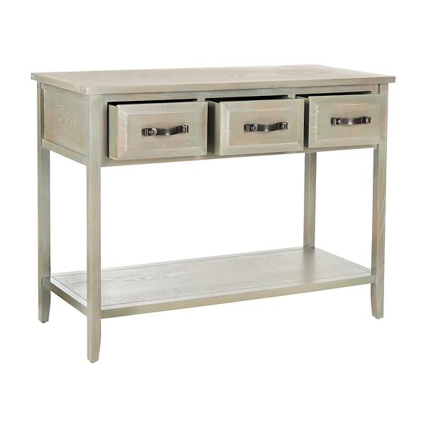 Freshen up your living room or hallway with this French Gray Ainsley Console Table. Its gray finish adds a modern touch to its traditional design. You’ll love the extra storage space this piece brings to any room! Console table measures 42.1L x 15W x 30H in. Crafted of elm wood French gray wood finish Features three (3) drawers Accented with an open lower shelf Weight capacity: 50 lbs. Assembly required Not intended for commercial use Care: Dust with a soft, dry cloth. Never use oiled or treated cloths on lacquered finishes. Some finishes can be wiped with a damp (not wet) cloth, followed at once by rubbing with a dry cloth to remove fingerprints and smudges. For persistent spots, gently clean with a soft cloth and a solution of water and mild soap, make sure to wipe dry. Use adhesive felt pads, coasters and placemats to protect your furniture. This item is available at Kirklands.com only, not available in stores. Please note: this item cannot be shipped to APO/FPO addresses. WARNING: This product can expose you to chemicals including Wood Dust which is known to the state of California to cause cancer and birth defects or other reproductive harm. For more information go to www.P65Warnings.ca.gov.