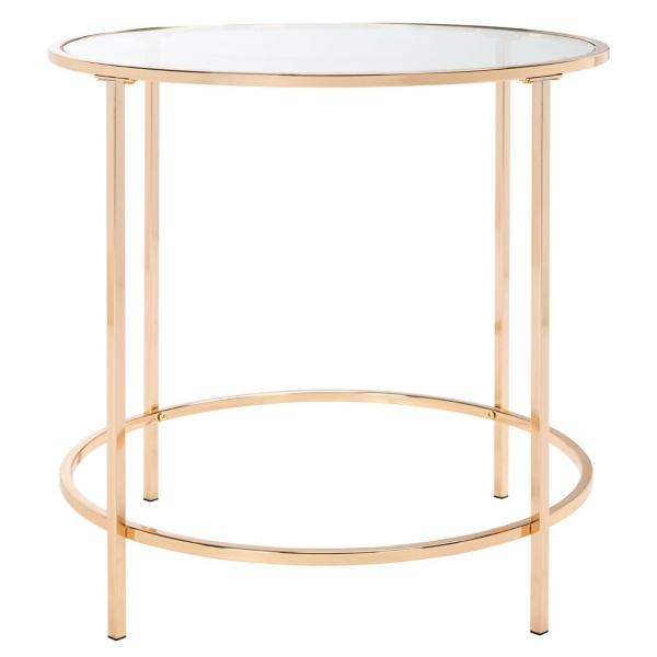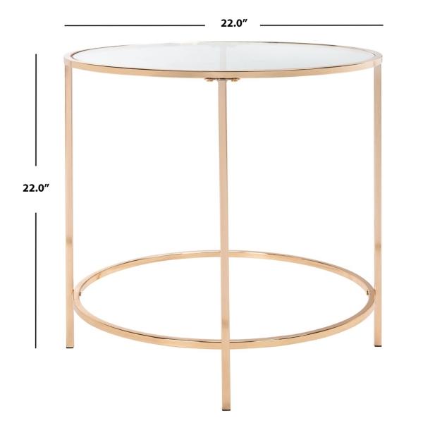 This Glass Tabletop & Gold Metal Suzan Round Side Table is an elegant touch to any contemporary chic interior! Its polished gold finish adds sophistication while the sleek frame offers balance for your space. Table measures 22H x 22 in. in diameter Crafted of metal Gold finish Features a clear glass tabletop Round shape Open base Weight: 10 lbs. Weight capacity: 22 lbs. Assembly required; see Info & Guides in the drop down below to view or print assembly info Not intended for commercial use Care: Wipe with a soft, dry cloth. This item is available at Kirklands.com only, not available in stores. Please note: this item cannot be shipped to APO/FPO addresses.