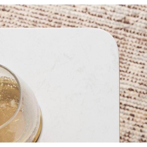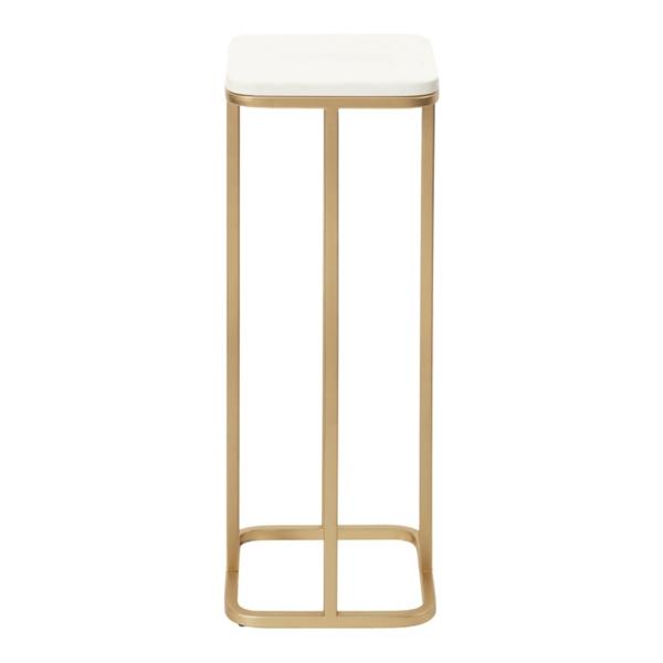 For the interior decorator with a passion for modern design comes this Gold and White Credele Accent Table. It features cultured marble tabletops, crafted with intricate detailing reminiscent of traditional Roman architecture. Table measures 8L x 8W x 22H in. Crafted of metal and synthetic marble Gold frame finish White marble tabletop finish Square shape Weight capacity: 7 lbs. No assembly required Not intended for commercial use Care: Dust with a soft, dry cloth. This item is available at Kirklands.com only, not available in stores. Please note: this item cannot be shipped to APO/FPO addresses. WARNING: Cancer and Reproductive Harm - For more information go to www.P65Warnings.ca.gov.