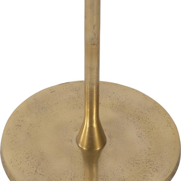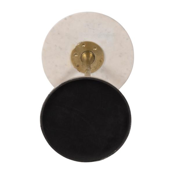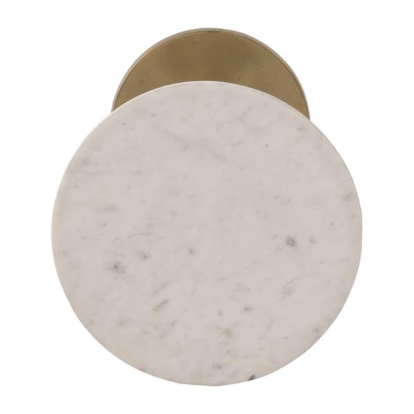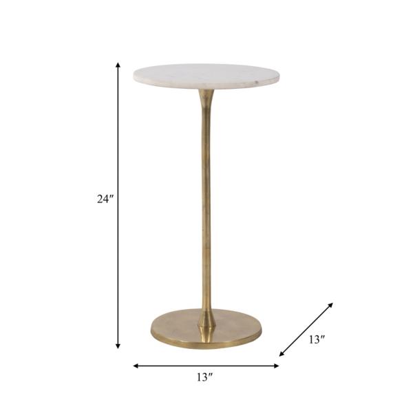 The Gold White Modern Round Pedestal Accent Table is perfect for providing surface space for drinks in small apartment. Its gold finish gives it an elegant flair to its modern style that you'll love! Table measures 24H x 13 in. in diameter Crafted of aluminum White and gold finish Round shape with pedestal base Weight: 12 Some assembly required Not intended for commercial use Care: Wipe clean with a soft, dry cloth. This item is available at Kirklands.com only, not available in stores. Please note: this item cannot be shipped to APO/FPO addresses.
