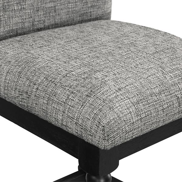 Add a touch fo farmhouse charm to your home with this Graphite Upholstered Spindle Eliza Counter Stool. This stool is not only stylish but comfortable, making it perfect for relaxing or entertaining guests! Counter stool measures 19.25W x 22.5 x 39H in.; seat height: 26.5 in. Crafted of wood Upholstered in light gray polyester and filled with high-density foam Black wood finish Spindle legs Padded seat and slight curved back Weight capacity: 200 lbs Assembly required Not intended for commercial use Care: Wipe with a soft, dry cloth. This item is available at Kirklands.com only, not available in stores. Please note: this item cannot be shipped to APO/FPO addresses.