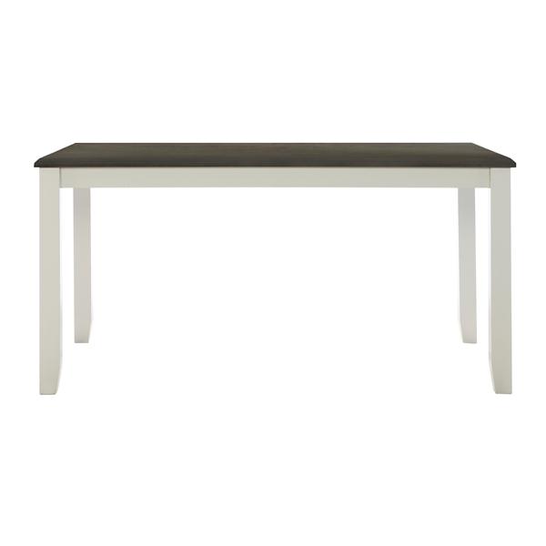 With neutral tones and an understated style, this Gray and White Two-Toned Wood Dining Table can be easily incorporated into any kitchen or dining room. Its contrasting light and dark finishes will give your space a nice refresh! Table measures 60L x 36W x 30H in. Crafted of wood and wood composite White frame finish Gray tabletop finish Rectangular shape Weight capacity: 150 lbs. Assembly required Not intended for commercial use Care: Dust with a soft, dry cloth. This item is available at Kirklands.com only, not available in stores. Please note: this item cannot be shipped to APO/FPO addresses. WARNING: Cancer and Reproductive Harm - For more information go to www.P65Warnings.ca.gov.