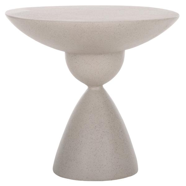 Bring clean, distinct character to your conversation nook with the Gray Ciarra Modern Accent Table. Its unique, hourglass shape and neutral finish make an eye-catching statement while seamlessly blending with your décor. Overall dimensions Width: 19.9 in. Depth: 19.9 in. Height: 18.1 in. Crafted of magnesium oxide Gray speckled finish Drum shaped top Hourglass base Weight: 16.5 lbs. Weight capacity: 50 lbs. No assembly required Not intended for commercial use Care: Dust with a soft, dry cloth. This item is available at Kirklands.com only, not available in stores. Please note: this item cannot be shipped to APO/FPO addresses.