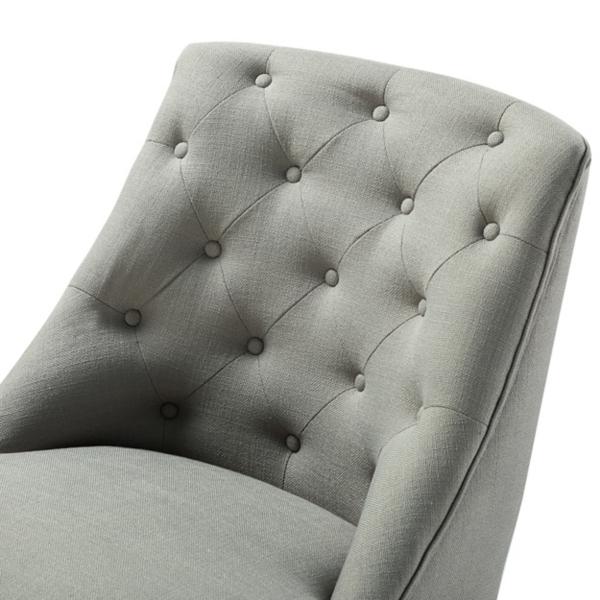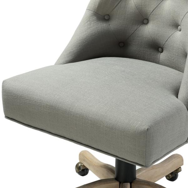 Revitalize your work-from-home space with our Gray Dylan Upholstered Office Chair. Its stylish buttons and ergonomic shape combine both fashion and function! Office chair measures 23L x 25.5W x 34.5-38.5H in.; seat measures 23H in. Crafted of fabric and wood Light brown wood base finish Hues of gray and brown Ergonomic shape Tufted button design Height-adjustable Armless design Comes with all-directional wheels on five-pronged base Weight capacity: 220 lbs. Assembly required Not intended for commercial use Care: Spot clean or professional care only. This item is available at Kirklands.com only, not available in stores. Please note: this item cannot be shipped to APO/FPO addresses.