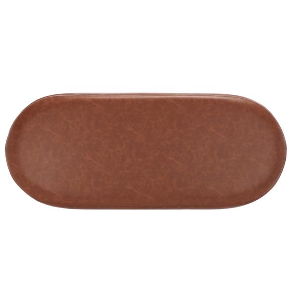 Give your space a sleek, minimalist touch with this Cognac Faux Leather Leota Bench! Its streamlined oval silhouette offers a modern look while its open matte black base adds a touch of dramatic decadence. Bench measures 50W x 20D x 19H in. Crafted with a metal frame Matte black metal finish Upholstered in brown PU leather and filled with high-density foam Features an open base Weight: 33 lbs. Weight capacity: 550 lbs. Assembly required Not intended for commercial use Care: Wipe with a soft, dry cloth. This item is available at Kirklands.com only, not available in stores. Please note: this item cannot be shipped to APO/FPO addresses.