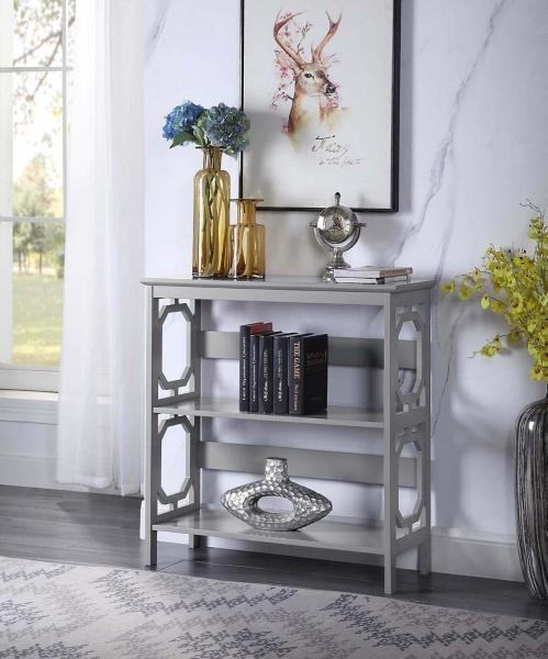 Add a touch of modern charm to your space with this Gray Geometric 3-Tier Bookcase! Designed to blend seamlessly into a variety of interiors, this three-tier bookcase offers both style and functionality. Bookcase measures 31.5W x 11.75D x 32.5H in. Crafted of MDF Gray finish Features three (3) tiers of shelving Geometric cut-out designs Weight: 26 lbs. Weight capacity: 11 lbs. per shelf Assembly required Not intended for commercial use Care: Wipe with a soft, dry cloth. This item is available at Kirklands.com only, not available in stores. Please note: this item cannot be shipped to APO/FPO addresses.