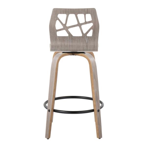 Bring contemporary character to your dining room with the set of Gray Golia Swivel Counter Stools. The curved frames, geometric cutouts, and padded leather seats create a distinct, modern look! Set includes two (2) stools Each stool measures 20.25L x 20.25W x 35.25H in.; seat measures 23.5H in. Crafted of polyester, foam, metal, and wood Gray wood frame finish Curved, bent wood frame Upholstered padded seat in gray fabric with foam fill Cutout backrests Swivel design Black metal footrests Weight capacity: 250 lbs. each Assembly required Not intended for commercial use Care: Wipe clean with a damp cloth. This item is available at Kirklands.com only, not available in stores. Please note: this item cannot be shipped to APO/FPO addresses.