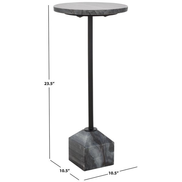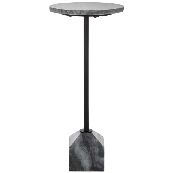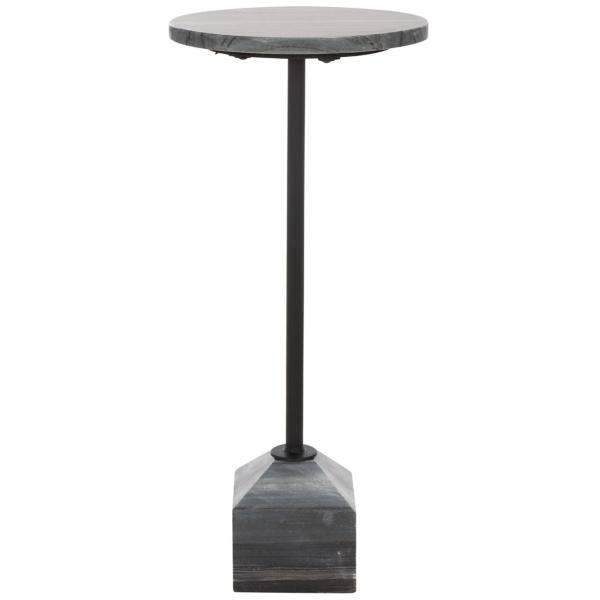 This Gray Marble Iron Vera Cocktail Table is effortlessly chic! Its eye-catching gray marble top and plinth base feature organic striations, perfectly offsetting the clean line of its black metal body. Cocktail table measures 10.5L x 10.5W x 23.5H in. Crafted of iron Black finish Round shape Features a gray marble tabletop Marble plinth base Weight: 16 lbs. Weight capacity: 8 lbs. No assembly required Not intended for commercial use Care: Wipe with a soft, dry cloth. This item is available at Kirklands.com only, not available in stores. Please note: this item cannot be shipped to APO/FPO addresses.