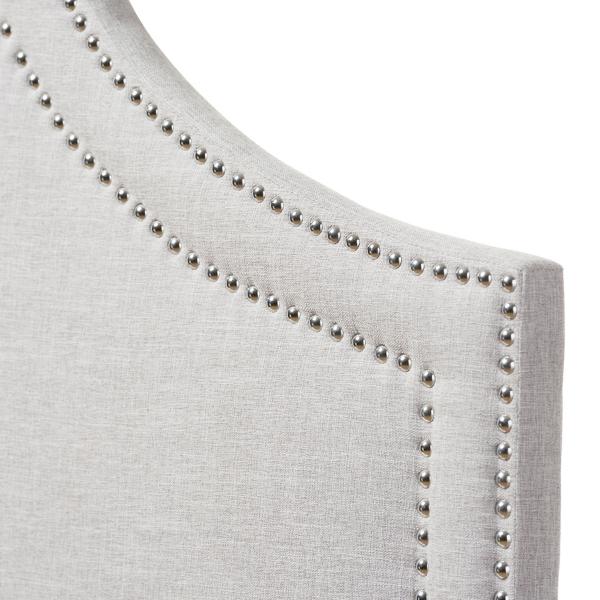 Make your bedroom an elegant space with our Gray Scalloped Corner Queen Headboard! This beautiful headboard will elevate your existing bed frame with ease. Headboard measures 25.7L x 2W x 60.8H in. Crafted of wood composite and metal Black metal finish Upholstered in a gray fabric with foam Scalloped edges with a silver nailhead trim Headboard comes with 2 pre-drilled holes (with height from ground up 5.5-8 in.) Assembly required Not intended for commercial use Care: Spot clean only. This item is available at Kirklands.com only, not available in stores. Please note: this item cannot be shipped to APO/FPO addresses. WARNING: This product can expose you to chemicals including formaldehyde phthalate which is known to the state of California to cause cancer and birth defects or other reproductive harm. For more information go to www.P65Warnings.ca.gov.