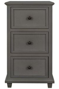 The chic finish of our Gray Slim Wooden 3-Drawer Side Table is what makes this piece so charming! You’ll fall in love with the way this table accents your farmhouse style. Side table measures 16L x 13W x 30H in. Crafted of solid pine wood and wood composite Gray finish with bronze hardware Features a panelled wood design Includes three (3) drawers Weight capacity: 18 lbs. Some assembly required Due to the production process, each piece is unique and no two are exactly alike. Not intended for commercial use Care: Wipe with a soft, damp cloth. Not safe for outdoor use. This item is available at Kirklands.com only, not available in stores. Please note: this item cannot be shipped to APO/FPO addresses.