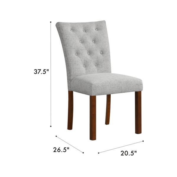 Upgrade your dining room with these Gray Tufted Parsons Dining Chairs! The classic design and sophisticated details will elevate your space. The gray upholstery can complement any décor style! Set includes two (2) chairs Overall dimensions Width: 20.5 in. Depth: 26.5 in. Height: 37.5 in. Frames crafted of wood Upholstered in polyester with high-density foam fill Brown wood leg finish Gray upholstery finish Features button tufted backrests Weight capacity: 250 lbs. each Assembly required Not intended for commercial use Care: Spot clean. This item is available at Kirklands.com only, not available in stores. Please note: this item cannot be shipped to APO/FPO addresses.