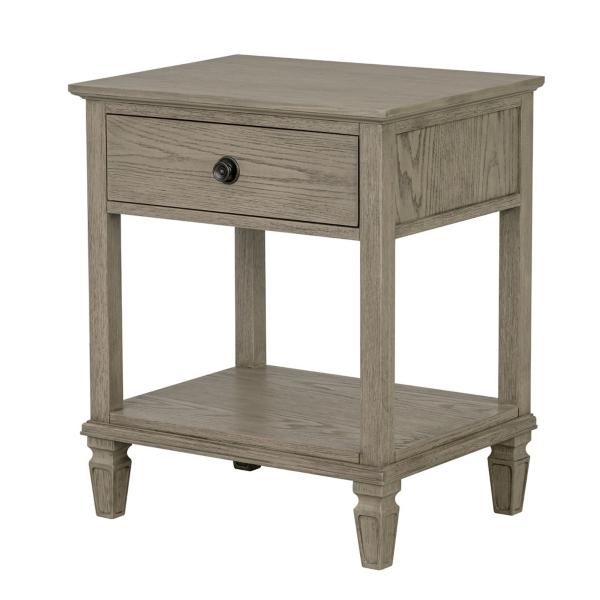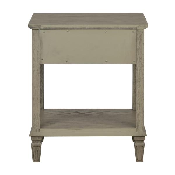 Complete your bedroom décor with this Gray Victoria Wood Nightstand. This classic nightstand features a pull-out drawer and a lower shelf that provides plenty of storage space for your essential items. Nightstand measures 24W x 19D x 28.5H in. Crafted of solid wood Gray finish Features one drawer and a lower shelf Drawer interior measures 17W x 15D x 4.75H in. Weight capacity: top: 150 lbs; shelf and drawer: 75 lbs. Weight: 2.2 lbs. Assembly required Not intended for commercial use Care: Wipe with a soft, dry cloth. This item is available at Kirklands.com only, not available in stores. Please note: this item cannot be shipped to APO/FPO addresses.
