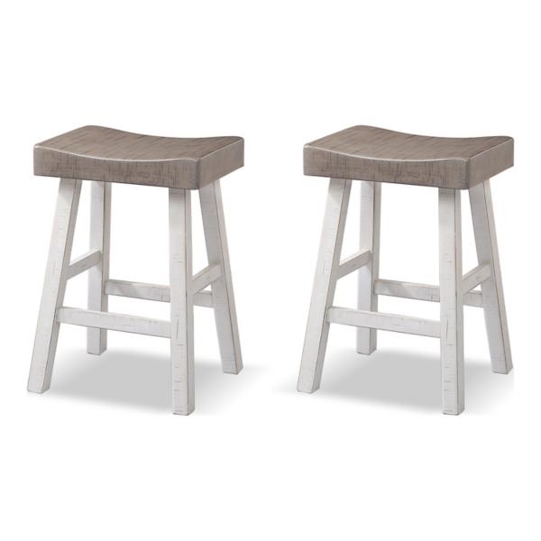 These Gray & White Cooper Counter Stools have a timeless look for any home! Their backless design allows them to be stowed completely under your counter, giving you plenty of room for your family. Set includes two (2) stools Each stool measures 17.5W x 13W x 24H in. Crafted of wood Gray seat and white base finish Features contoured seats Weight capacity: 200 lbs. Assembly required Not intended for commercial use Care: Spot clean. This item is available at Kirklands.com only, not available in stores. Please note: this item cannot be shipped to APO/FPO addresses.