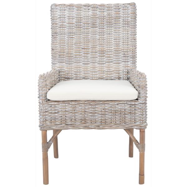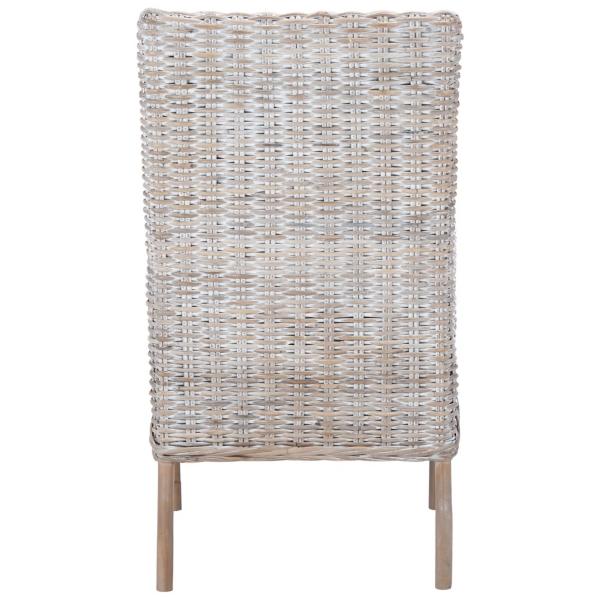 Infuse coastal charm into your space with this Gray Whitewash Kubu Rattan Sarah Accent Chair! Its whitewash finish gives this chair a seaside look that you'll love in your living room or bedroom. Chair measures 18.5W x 22.8D x 38.2H in.; seat height: 20.87 in. Crafted with a kubu rattan frame Upholstered in fabric and filled with high-density foam Gray whitewash rattan finish White upholstery finish Features a woven rattan design Weight: 14 lbs. Weight capacity: 275 lbs. No assembly required Not intended for commercial use Care: Spot clean. This item is available at Kirklands.com only, not available in stores. Please note: this item cannot be shipped to APO/FPO addresses.