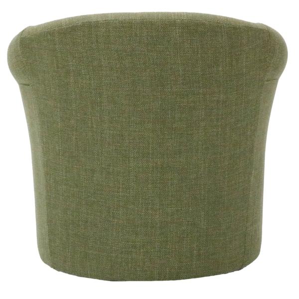 Create a cozy reading nook or stylish living space with this Green Upholstered Nikole Swivel Accent Chair! This swivel barrel chair features soft upholstery and rounded armrests for maximum comfort. Accent chair measures 30.5W x 27.5D x 32H in. Crafted with a wood and metal frame Upholstered in green polyester and filled with high-density foam Features a barrel chair design Rounded arms 360 degree swivel capability Weight: 25 lbs. Weight capacity: 300 lbs. No assembly required Made in the United States Not intended for commercial use Care: Spot clean. This item is available at Kirklands.com only, not available in stores. Please note: this item cannot be shipped to APO/FPO addresses.