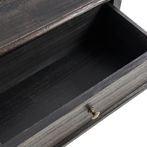 Elevate your bedroom with the timeless charm of this Hippe Charcoal Gray 2 Drawer Nightstand! Featuring two spacious drawers with sleek, round metal knobs, it offers ample storage for your nighttime essentials. Nightstand measures 24W x 16D x 24H in. Crafted of manufactured wood Distressed charcoal gray finish Features two (2) drawers Curved legs Weight: 19 lbs. Assembly required Not intended for commercial use Care: Wipe with a soft, dry cloth. This item is available at Kirklands.com only, not available in stores. Please note: this item cannot be shipped to APO/FPO addresses.